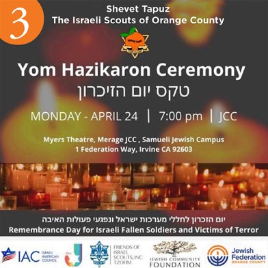 Join the Orange County Jewish community as we come together to honor Israeli fallen soldiers and victims of terror.