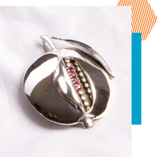 Proudly wear the Pomegranate pin, the symbol of sustenance, and engage in programming with like-minded women, with your annual commitment of $1,800+ *. Rubies, representing seeds of the pomegranate, can be added to your silver pin for each year you are a Pomegranate.
