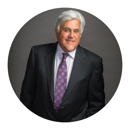 Jay Leno is an acclaimed late-night television host, admired stand-up comedian, best-selling children’s book author, in-demand corporate speaker, television and film voice-over artist, pioneering car builder and mechanic, and philanthropist. He currently produces and hosts Jay Leno’s Garage, a YouTube channel with an international following that has received several Emmy Awards and nominations for Outstanding Special Class–Short-Format Nonfiction Programs.
